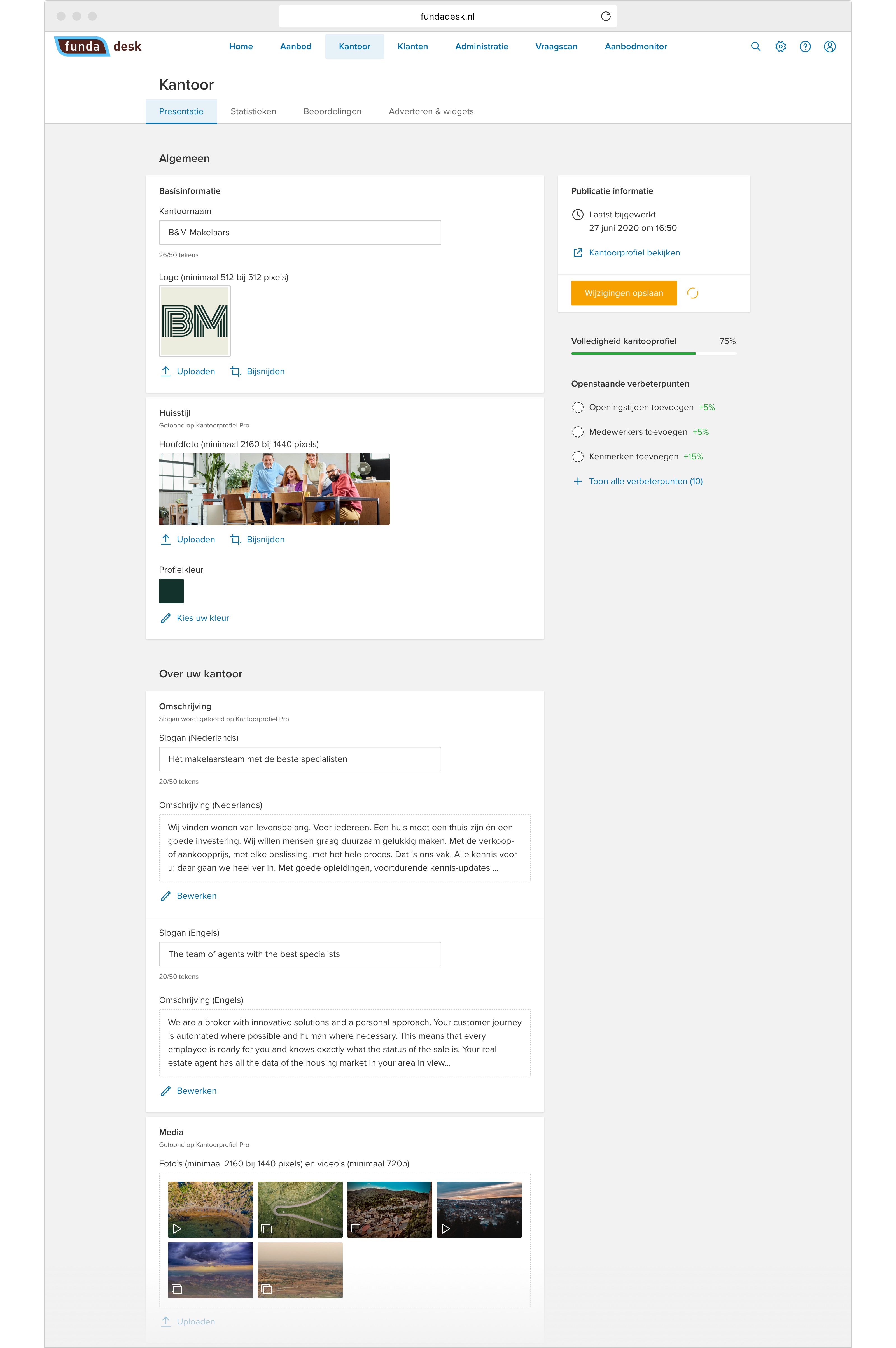 In funda desk, agents are in control over every detail of their Office Page. With feedback from two extensive beta rounds we made sure the transition to the new Office Page will be a smooth experience.