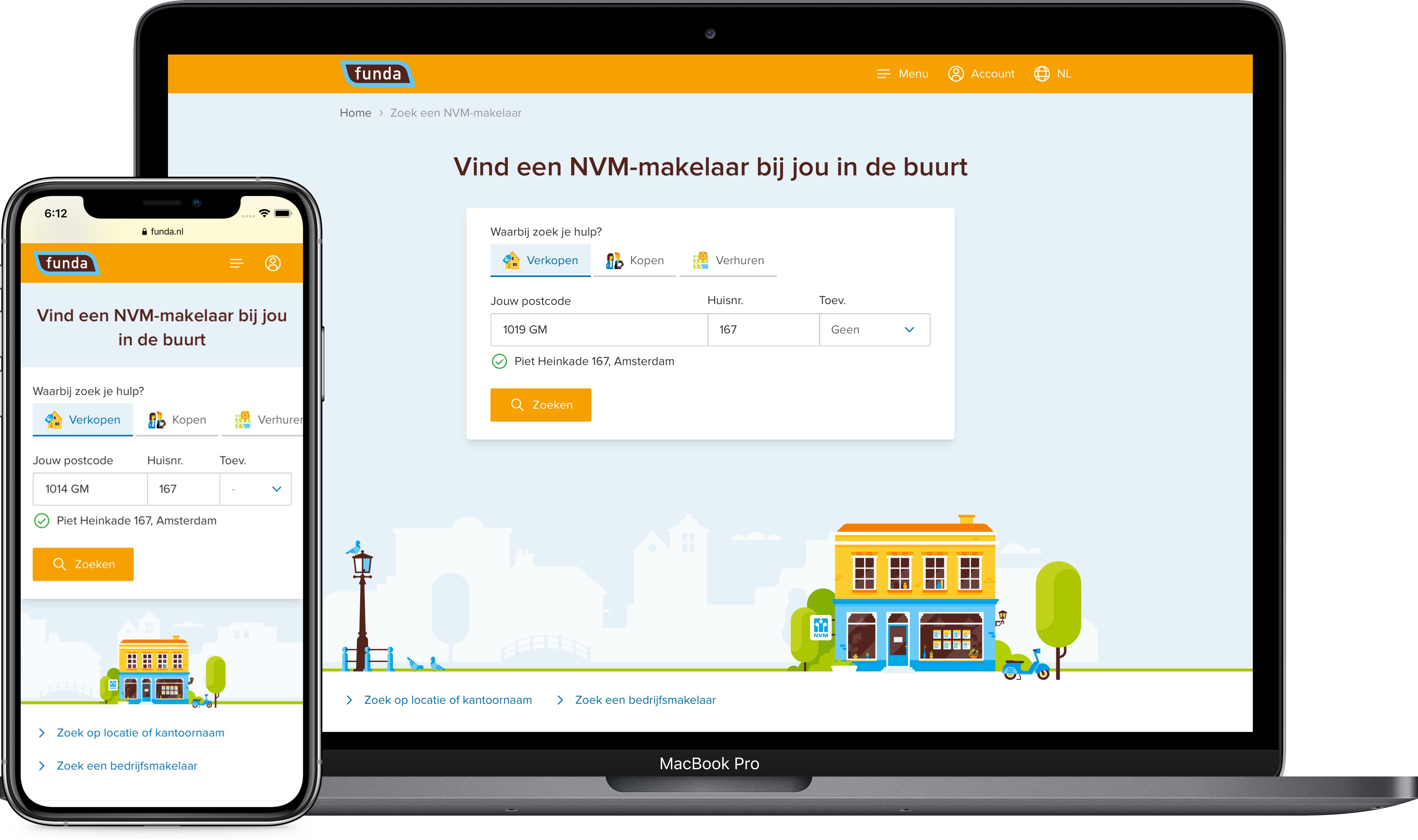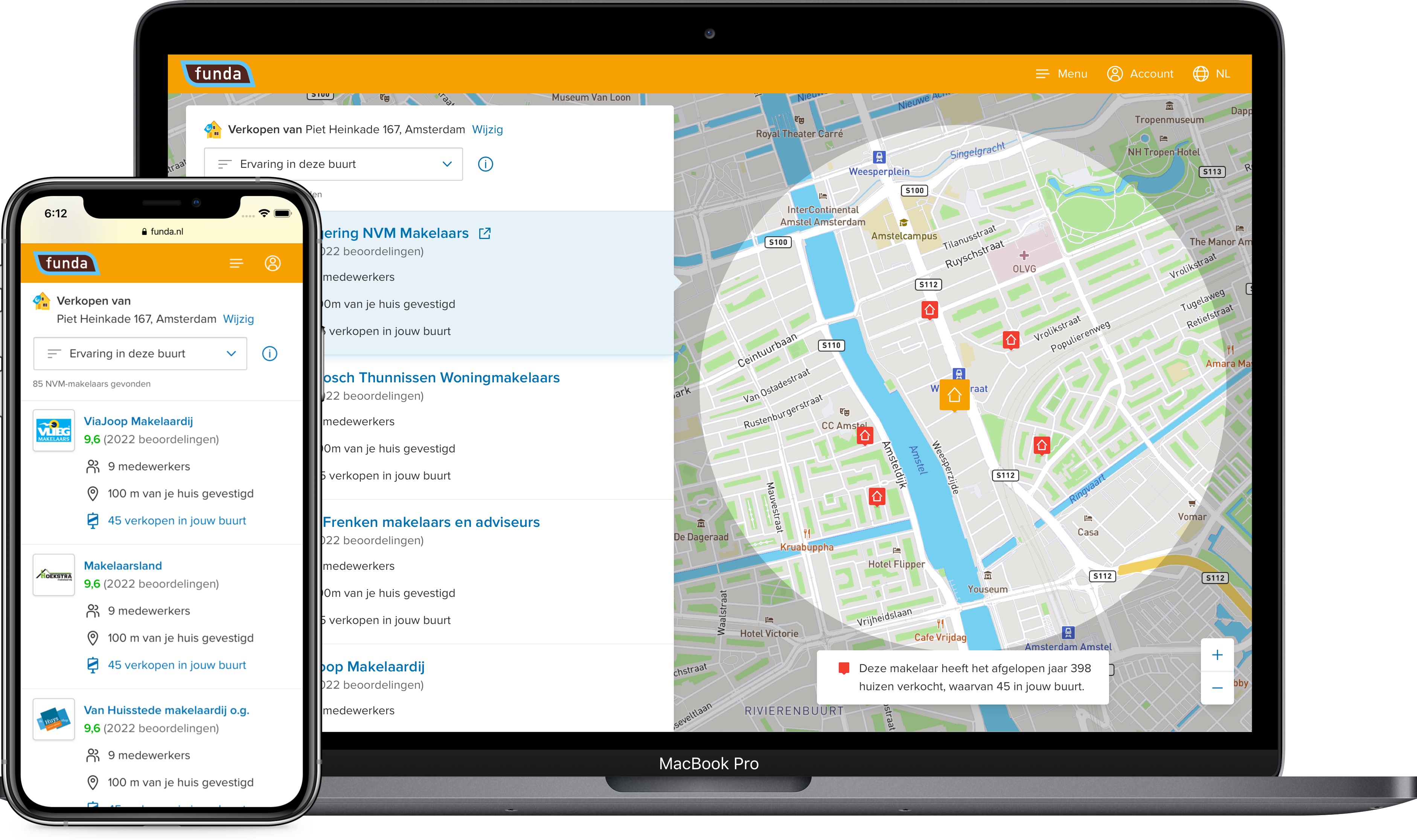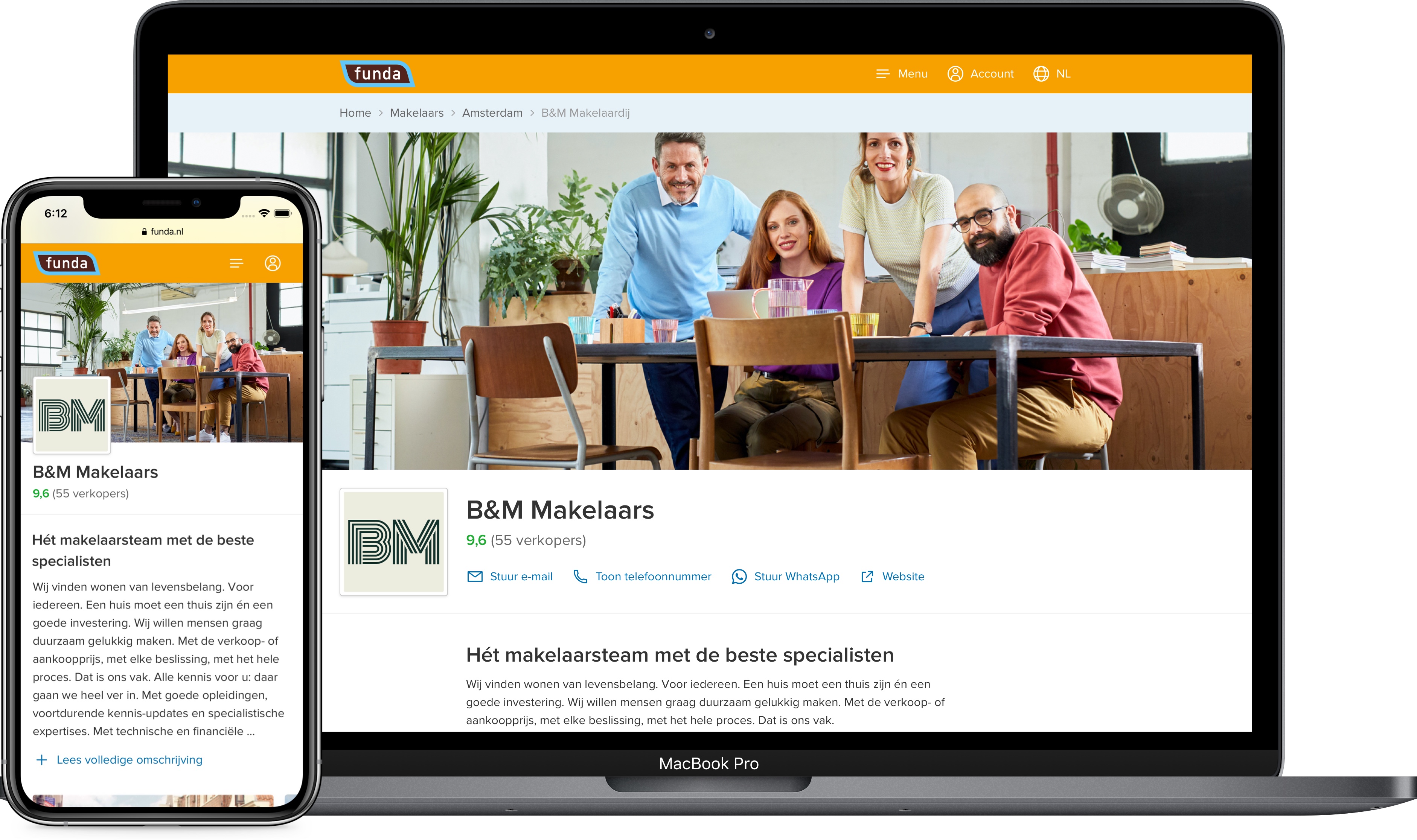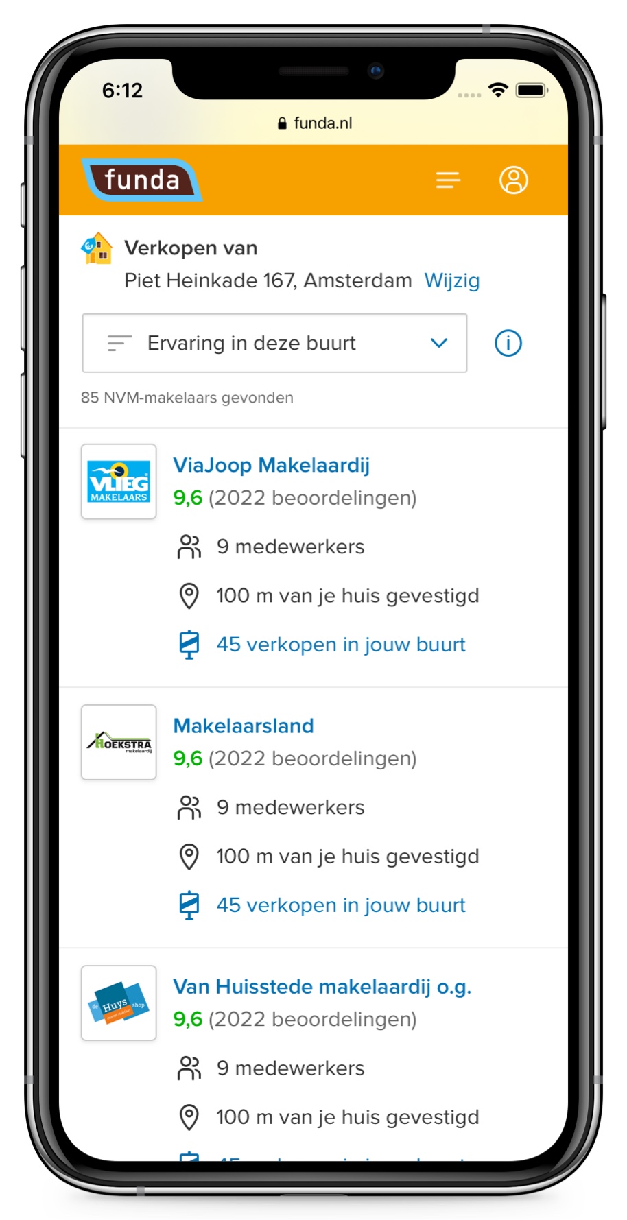 funda is probably best known as a marketplace for houses, but funda also helps to find the best real estate agent near you. With new features as the Office Page and Makelaar Search funda tries to bring user and agent together.